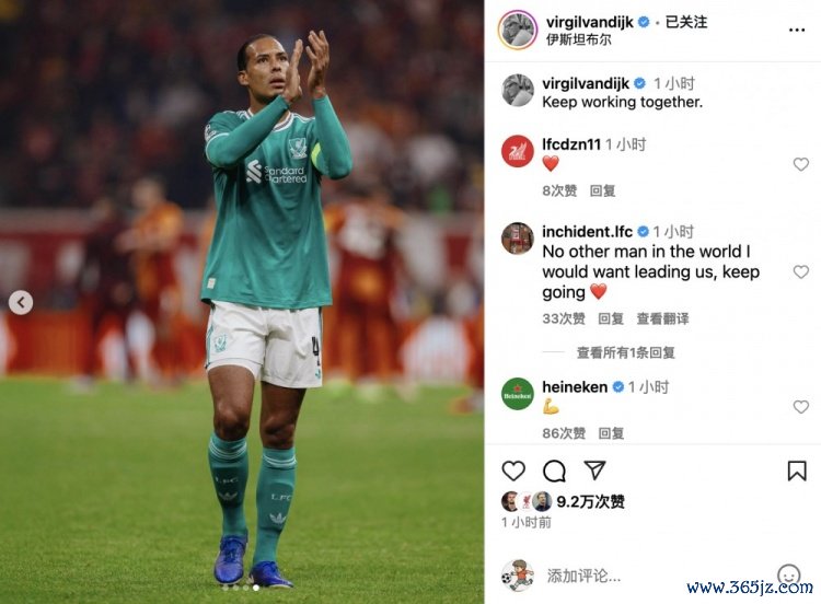 赛后,赤部队长范迪克更新酬酢媒体晒照配文饱读吹球队,写说念:让咱们连接共同勤劳!