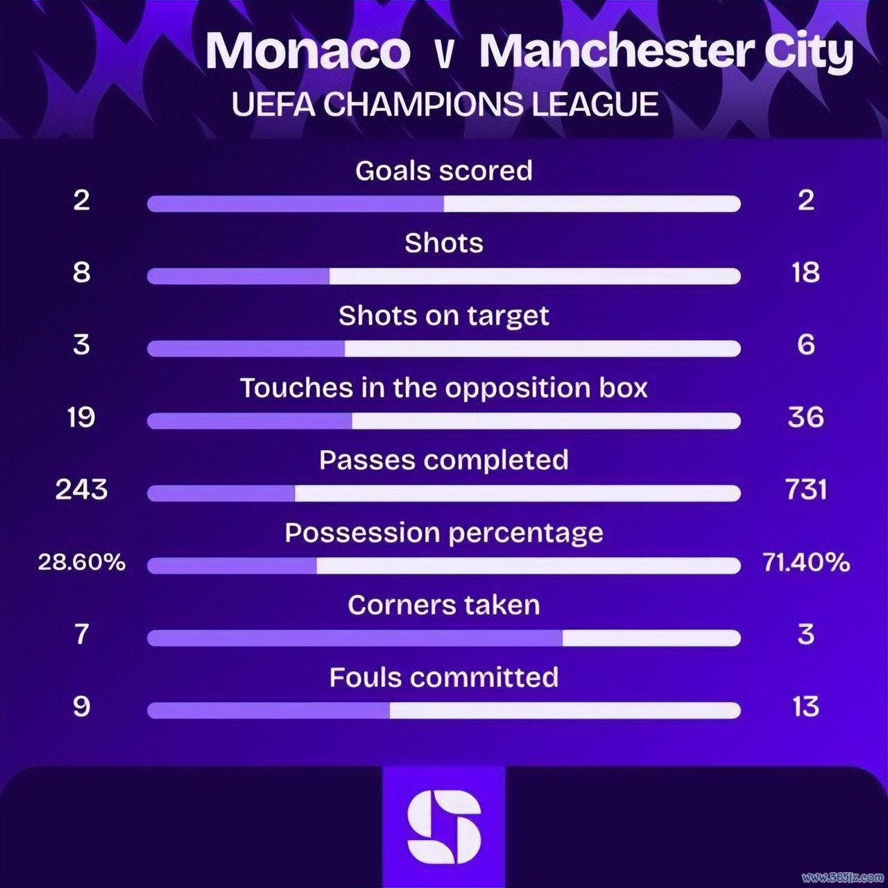 最初摩纳哥加大了疯抢的力度,给了尼科上压力,就此他很难传出上半场俱乐部打出纵深传递,只可更多的向边路发展。而来到边路之后,由于摩纳哥的注重吸取了上半场的资历警戒,不给曼城肋部的机会,因此他们也就只可采选横传了就此紧迫后果镌汰了。反倒是被摩纳哥打出反击越发有阻难。