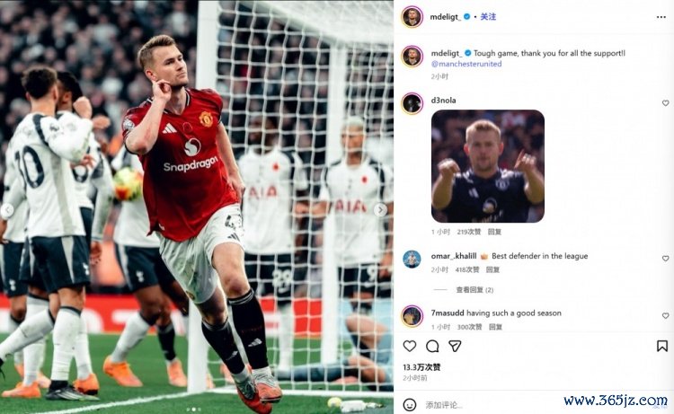 11月9日讯 曼联在本轮英超焦点战2-2绝平热刺,德里赫特头槌破门。