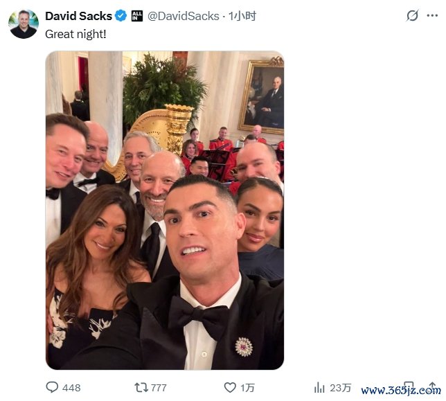 该图为C罗拿入辖下手机自拍的视角,图中包括乔治娜、马斯克、因凡蒂诺等东说念主。之后马斯克还在该推特下驳斥。