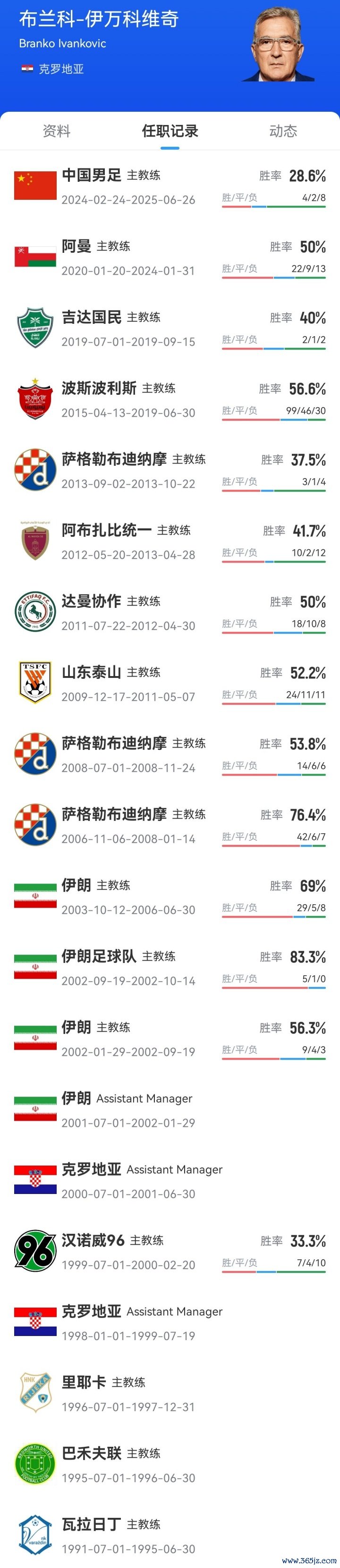 2024年2月24日,伊万出任中国男足主帅,2025年6月27日下课,手艺共带队崇拜比赛14场,战绩为4胜2平8负。其中叶初赛36强赛国足1胜2平1负“躺进”18强赛,18强赛国足3胜7负进7球丢20球,提前1轮无缘2026好意思加墨宇宙杯。国足也成为伊万握教生存的临了一站。