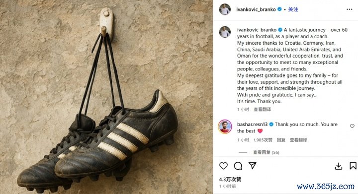 10月30日讯 71岁前国足主帅伊万科维奇在社媒发文,崇拜文书退休,他暗示我方以球员和培育身份飞奔足坛逾六十载,是时辰该别足坛了。