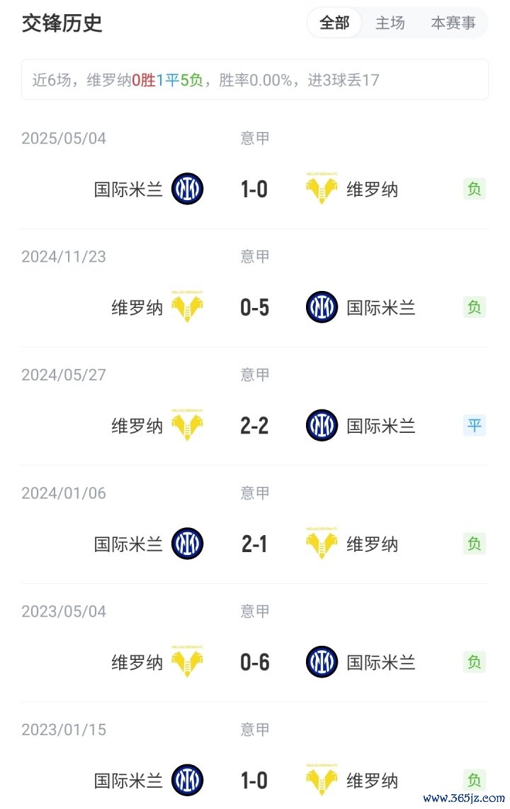 当今意甲积分榜上,国米6胜3负积18分,位列第3;维罗纳5平4负积5分,位列第18。