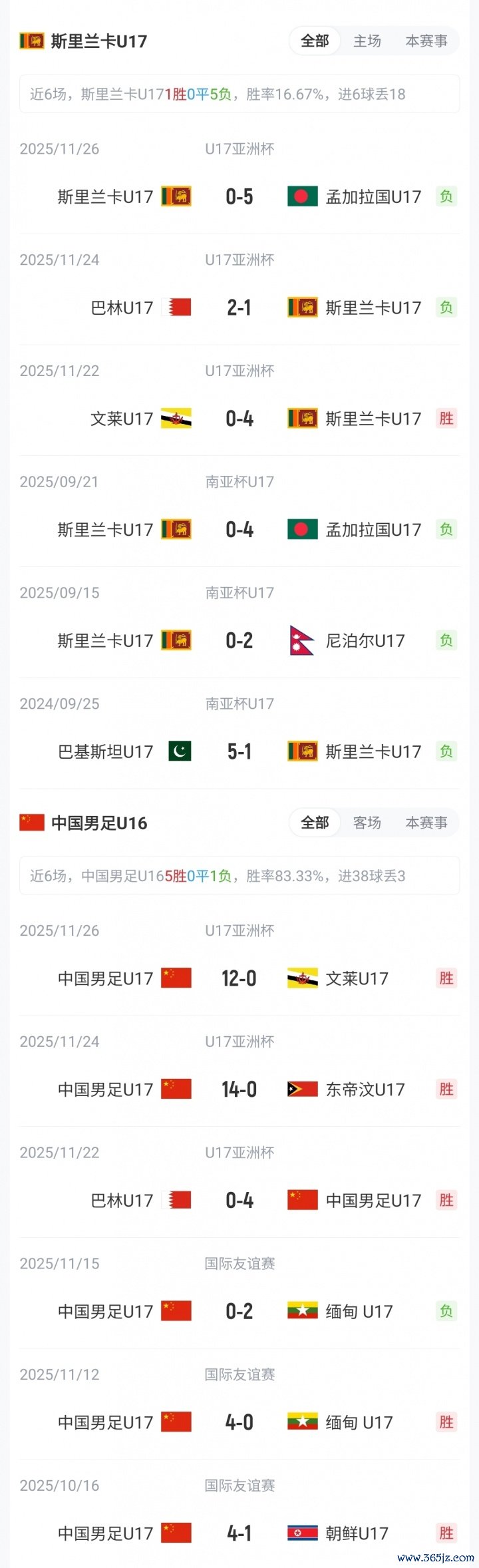 U16国足前3轮全胜,并狂轰30球0丢球,分手4-0巴林U16、14-0东帝汶U16、12-0文莱U16;斯里兰卡U16前3轮1胜2负,分手4-0文莱U16、1-2巴林U16、0-5孟加拉U16。